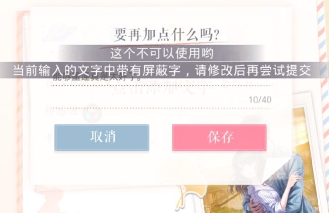 “当前文字中含有敏感词,请修改后再提交。”