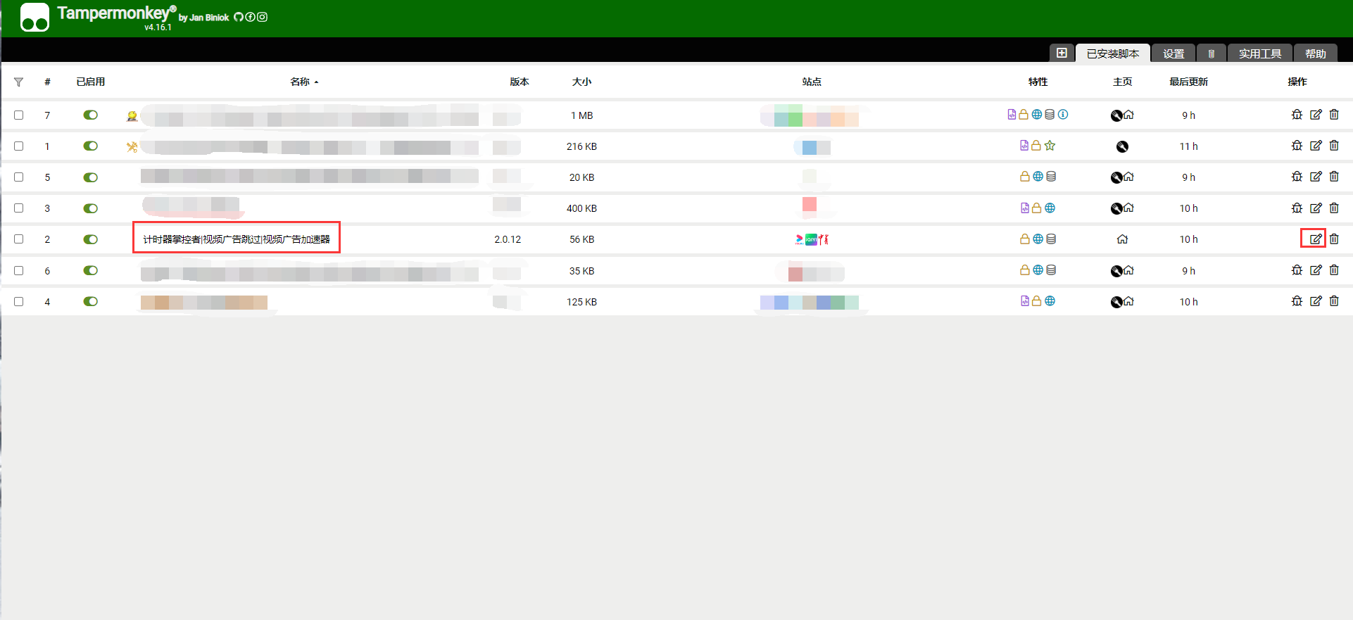 找到 计时器掌控者|视频广告跳过|视频广告加速器,点击右边的 编辑 按钮(如下图所示)