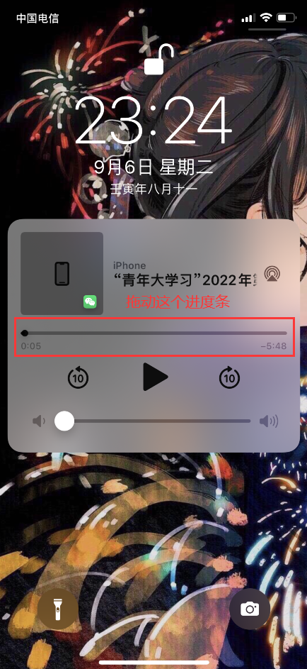 大学习网页视频开始播放后锁屏,然后在锁屏界面即可直接拖动进度条